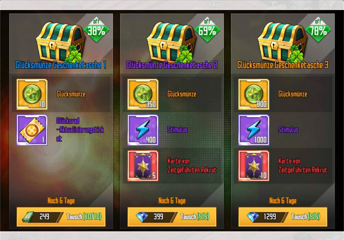 - Verwendet Glücksmünzen, um Belohnungen zu erhalten!