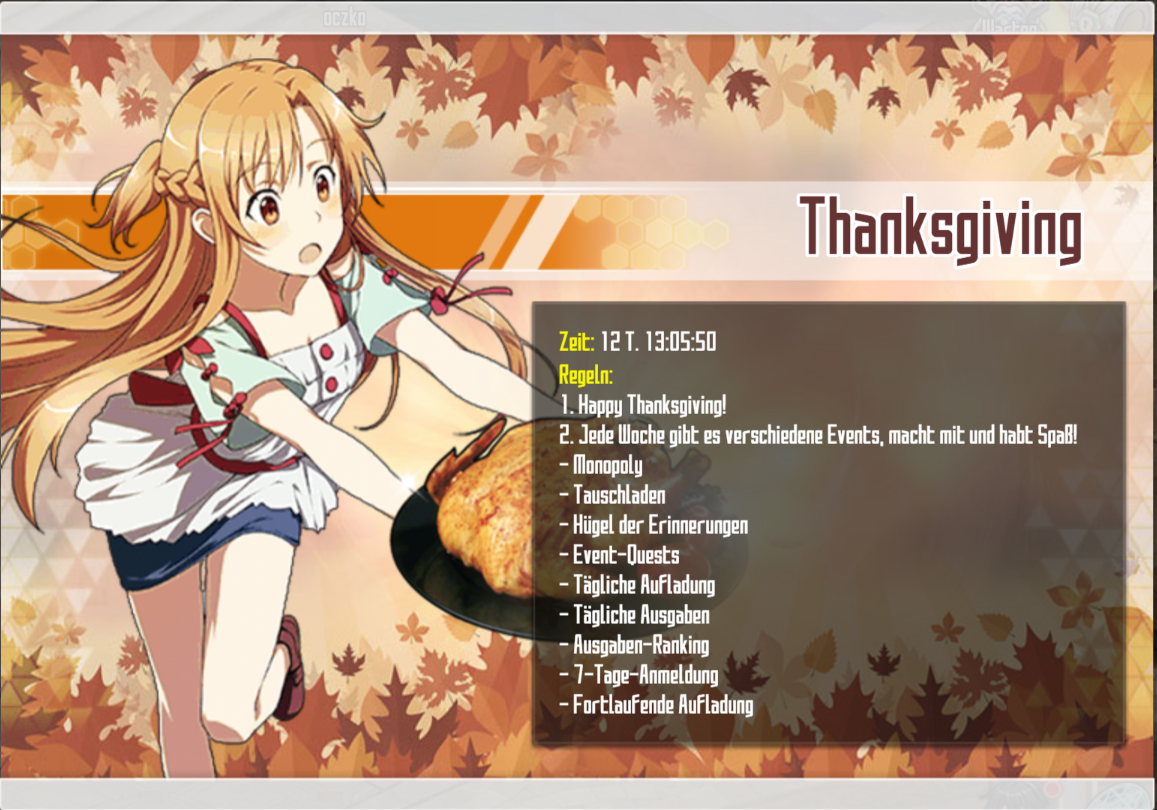 1 – Das Event „Thanksgiving“ hat begonnen