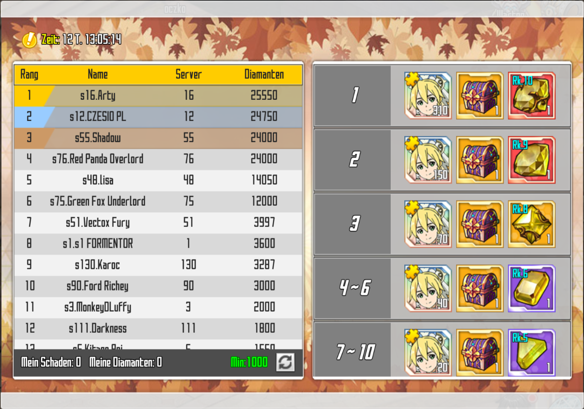 - Als Ergebnis des Events erhalten Spieler, die in der Rangliste stehen, zusätzliche Belohnungen.