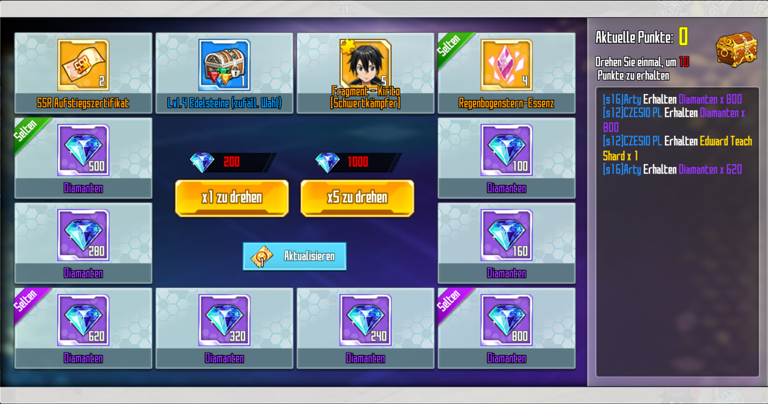 - Für jede Drehung des Roulette-Rades erhaltet ihr Punkte.