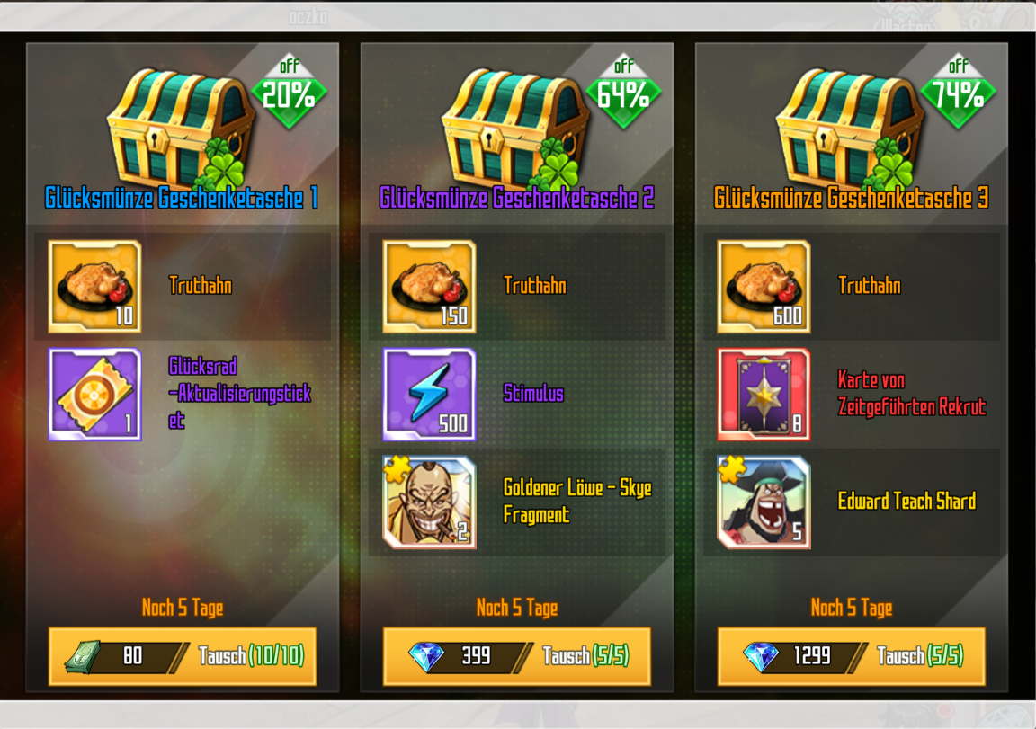 - Verwendet Glücksmünzen, um Belohnungen zu erhalten!